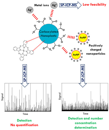- Jiménez-lamana, J.; Marigliano, L.; Allouche, J.; Grassl, B.; Szpunar, J.; Reynaud, S. A novel strategy for the detection and quantification of nanoplastics by single particle inductively coupled plasma mass spectrometry (ICP-MS). Anal. Chem. 2020, 92, 11664–11672. [Google Scholar] [CrossRef]
