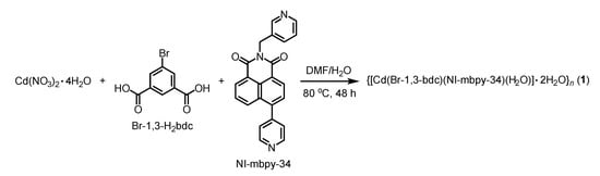 2.2. Synthesis of {[Cd(Br-1,3-bdc)(NI-mbpy-34)(H2O)]∙2H2O}n (1)