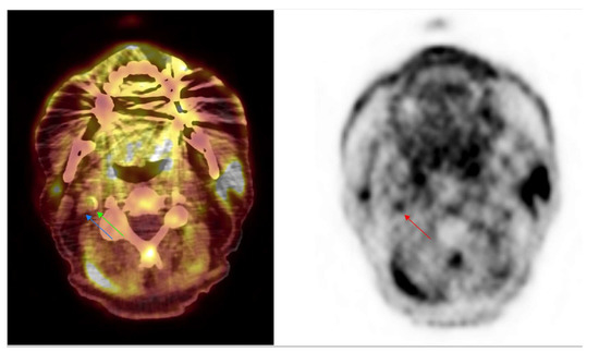 - Vöö, S.; Kwee, R.M.; Sluimer, J.C.; Schreuder, F.H.B.M.; Wierts, R.; Bauwens, M.; Heeneman, S.; Cleutjens, J.P.M.; van Oostenbrugge, R.J.; Daemen, J.-W.H.; et al. Imaging Intraplaque Inflammation in Carotid Atherosclerosis with 18F-Fluorocholine Positron Emission Tomography-Computed Tomography: Prospective Study on Vulnerable Atheroma with Immunohistochemical Validation. Circ. Cardiovasc. Imaging 2016, 9, e004467. [Google Scholar] [CrossRef]