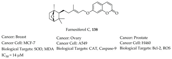- Kasaian, J.; Mohammadi, A. Biological activities of farnesiferol C: A review. J. Asian Nat. Prod. Res. 2018, 20, 27–35. [Google Scholar] [CrossRef]