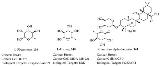 - Tomsik, P.; Soukup, T.; Cermakova, E.; Micuda, S.; Niang, M.; Sucha, L.; Rezacova, M. L-rhamnose and L-fucose suppress cancer growth in mice. Cent. Eur. J. Biol. 2011, 6, 1–9. [Google Scholar] [CrossRef]
