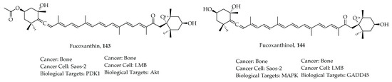 - Rokkaku, T.; Kimura, R.; Ishikawa, C.; Yasumoto, T.; Senba, M.; Kanaya, F.; Mori, N. Anticancer effects of marine carotenoids, fucoxanthin and its deacetylated product, fucoxanthinol, on osteosarcoma. Int. J. Oncol. 2013, 43, 1176–1186. [Google Scholar] [CrossRef]