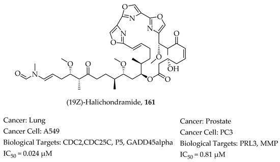 - Bae, S.Y.; Kim, G.D.; Jeon, J.E.; Shin, J.; Lee, S.K. Anti-proliferative effect of (19Z)-halichondramide, a novel marine macrolide isolated from the sponge Chondrosia corticata, is associated with G2/M cell cycle arrest and suppression of mTOR signaling in human lung cancer cells. Toxicol. In Vitro 2013, 27, 694–699. [Google Scholar] [CrossRef]