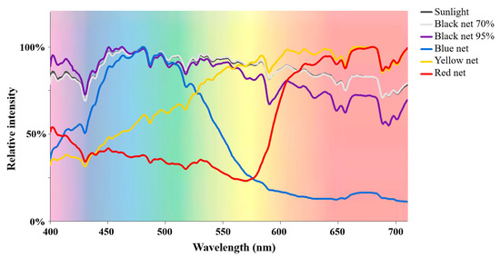 | Sunlight | Black Net 70% | Black Net 95% | Blue Net | Yellow Net | Red Net | |
