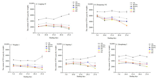 2.2. Impacts of Shade Treatments on the Profiles of Catechins in the Young Shoots of Different Tea Cultivars