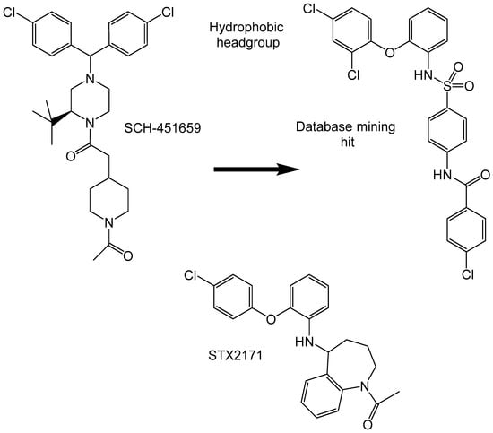 We reported earlier on our own initial efforts in this area, applying a structure-based drug design approach encompassing pharmacophore generation, database mining (Maybridge), homology model construction and docking studies [17], as well as using SCH-451659 [13] as a lead compound [18,19] (Figure 3).