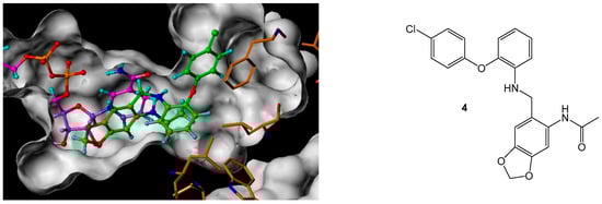 Compound 4 with a 4,5-methylenedioxy substituent docked into the homology model.