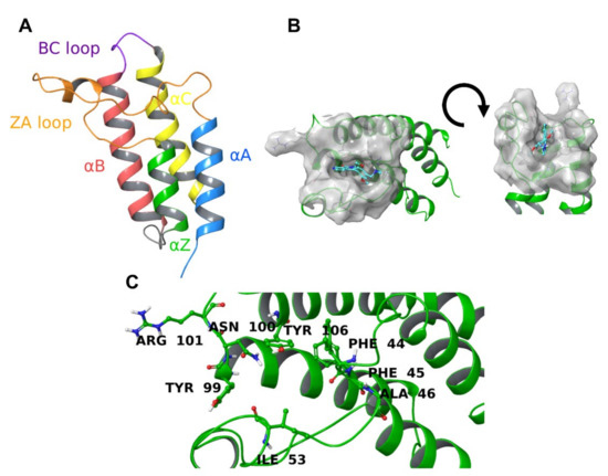 | Apo | Phe47, Thr50, Asp51, Ala52, Ile53, Ala54, Pro55, Met59, Ile60, Lys62 |