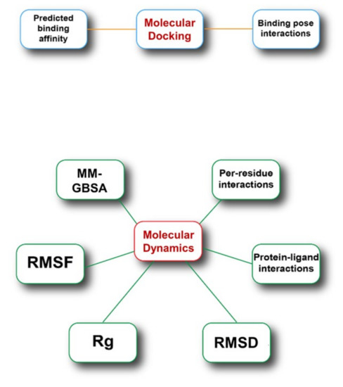- Despite the MM-GBSA value, if both the per-residue contributions and the interactions made are not sufficient, the compound is placed among the worst in the final ranking (“Bad” in Table 6).