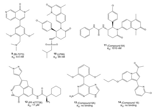 - Hui, M.; Jian, Z.; Peiyuan, Z.; Zhenwei, W.; Huibin, Z. Research progress of selective small molecule bromodomain-containing protein 9 inhibitors. Future Med. Chem. 2018, 10, 895–906. [Google Scholar] [CrossRef]