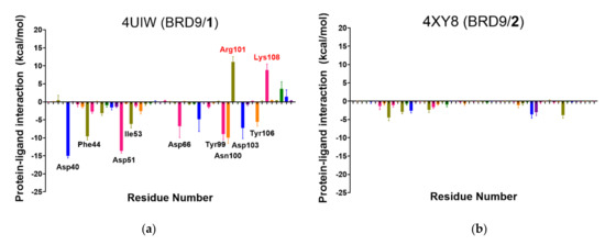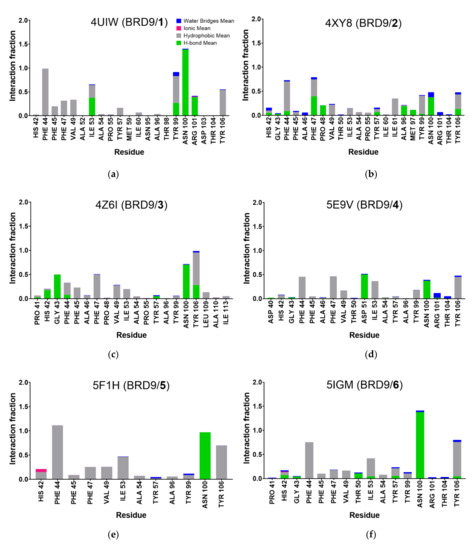 - Su, J.; Liu, X.; Zhang, S.; Yan, F.; Zhang, Q.; Chen, J. Insight into selective mechanism of class of I-BRD9 inhibitors toward BRD9 based on molecular dynamics simulations. Chem. Biol. Drug Des. 2019, 93, 163–176. [Google Scholar] [CrossRef] [PubMed]