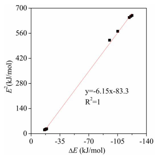 Table 2 presents the binding distance in the complexes. The binding distance comes down from a maximum of 3.00 Å for the –NH2 substituent to 2.02 Å for –SO3H. It is much shorter than the sum of van der Waals Radii of Si and O atoms (~3.6 Å) [55]. A good quadratic relationship is found between the interaction energy and the Si···O separation (Figure 4). However, a linear relationship is usually present in hydrogen bonds [56]. This difference is mainly caused by the steric hindrance of three F atoms in the tetrel bonds. Along with this interaction strengthening, one sees a concomitant contraction of the intermolecular separation. Moreover, the interaction energy is more sensitive to the binding distance for the strong tetrel bonds. Namely, the small change of the binding distance in the range of the short Si···O separation corresponds to the large variation of the interaction energy.