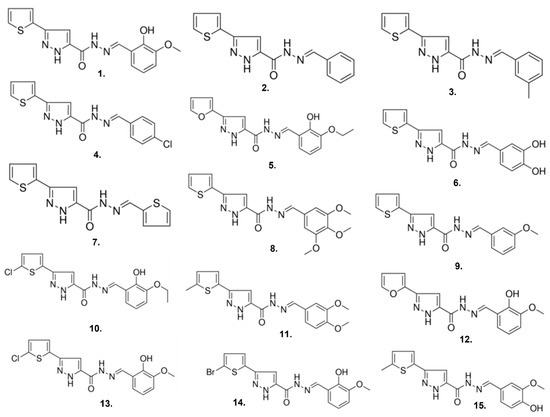 Chemical structures of compound 1 and 14 analogs of compound 1.