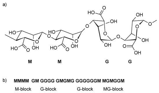 - Larsen, B.; Smidsrød, O.; Painter, T.; Haug, A.; Rasmussen, S.E.; Sunde, E.; Sørensen, N.A. Calculation of the Nearest-neighbour Frequencies in Fragments of Alginate from the Yields of Free Monomers after Partial Hydrolysis. Acta Chem. Scand. 1970, 24, 726–728. [Google Scholar] [CrossRef][Green Version]