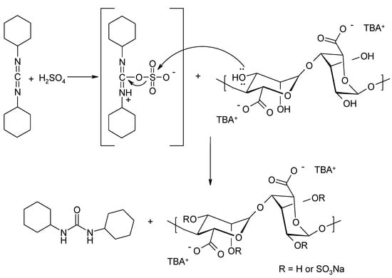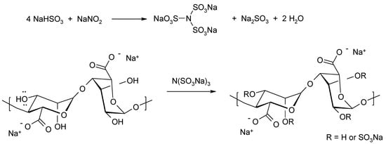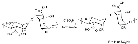 - Fan, L.; Jiang, L.; Xu, Y.; Zhou, Y.; Shen, Y.; Xie, W.; Long, Z.; Zhou, J. Synthesis and anticoagulant activity of sodium alginate sulfates. Carbohydr. Polym. 2011, 83, 1797–1803. [Google Scholar] [CrossRef]