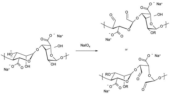 - Gomez, C.G.; Rinaudo, M.; Villar, M.A. Oxidation of sodium alginate and characterization of the oxidized derivatives. Carbohydr. Polym. 2007, 67, 296–304. [Google Scholar] [CrossRef]