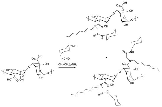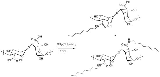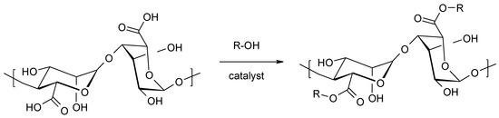 - Pawar, S.N.; Edgar, K.J. Chemical modification of alginates in organic solvent systems. Biomacromolecules 2011, 12, 4095–4103. [Google Scholar] [CrossRef] [PubMed]