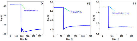 Response for 5 mM PBS, 5 mM dopamine and 1% diluted saliva solution.
