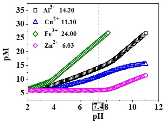 where xM is the mole fraction of metal cation complexed by the ligand, pL = −log cL and pL0.5 = −log cL, if xM = 0.5. The evaluation of the sequestering ability is very important for detoxification, remediation of polluted systems and water treatment processes, requiring the use of a chelating agent with the aim of trying to optimize the working conditions. A more detailed description of the pL0.5 determination, its importance and other possible applications is reported in the literature [40].