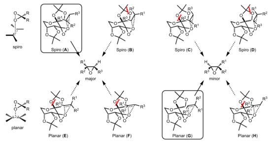 - Makó, A.; Menyhárd, D.K.; Bakó, P.; Keglevich, G.; Tőke, L. Theoretical study of the asymmetric phase-transfer mediated epoxidation of chalcone catalyzed by chiral crown ethers derived from monosaccharides. J. Mol. Struct. 2008, 892, 336–342. [Google Scholar] [CrossRef]