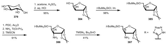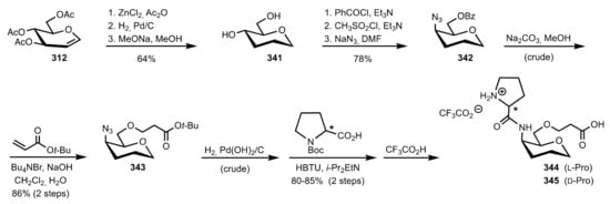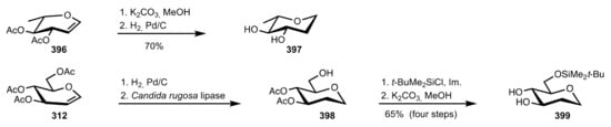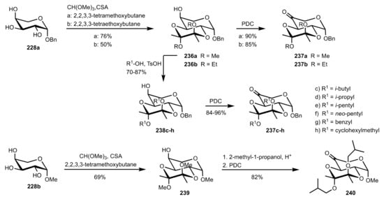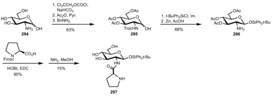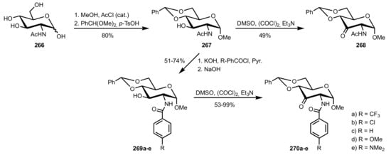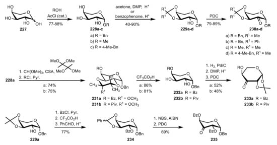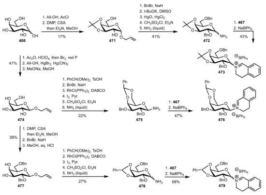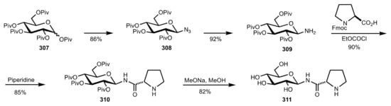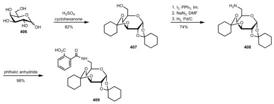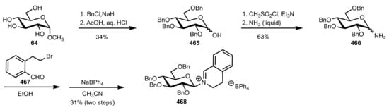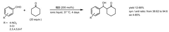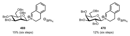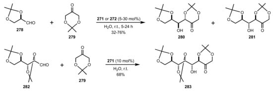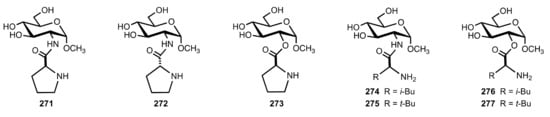 On the other hand, the larger review [19] published the same year in the same journal, although fully focused on carbohydrate organocatalysis, described the applications of only a class of sugar-based organocatalysts, i.e., the aminosugars and their derivatives; however, the syntheses of these organocatalysts were not reported. Another 2016 review [20] described exclusively the application of sugar-based organocatalysts in aldol reaction without mention of other organocatalysed reactions. In a 2017 review [21], a one-page section was devoted to only polysaccharide-based organocatalysis.