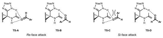 Figure 7 shows the proposed interactions that account for the observed stereoselectivity, which was further substantiated by semiempirical (AM1) calculations.