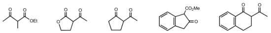 - Tőke, L.; Bakó, P.; Keserű, G.M.; Albert, M.; Fenichel, L. Asymmetric Michael Addition and Deracemization of Enolate by Chiral Crown Ether. Tetrahedron 1998, 54, 213–222. [Google Scholar] [CrossRef]