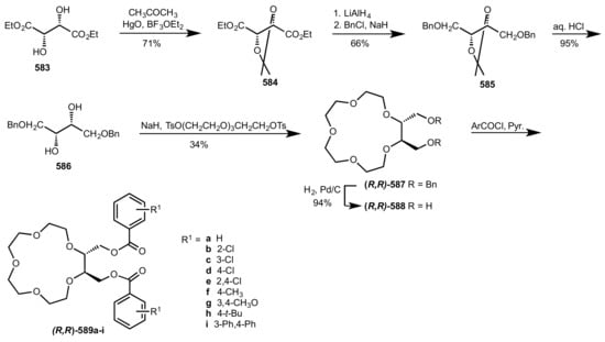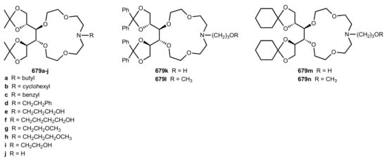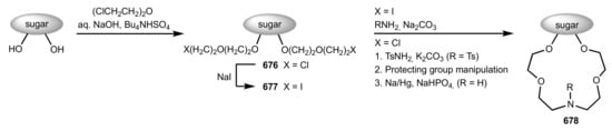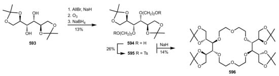 - Curtis, W.D.; Laidler, D.A.; Stoddart, J.F.; Jones, G.H. Synthesis of configurationally chiral cryptands and cryptates from carbohydrate precursors. J. Chem. Soc. Chem. Commun. 1975, 1975, 833–835. [Google Scholar] [CrossRef]