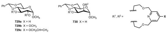 - Alonso-Lopez, M.; Bernabe, M.; Fernandez-Mayoralas, A.; Jimenez-Barbero, J.; Martin-Lomas, M.; Penadés, S. Chiral macrocyclic compounds from lactose derivatives. Carbohydr. Res. 1986, 150, 103–109. [Google Scholar] [CrossRef]