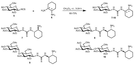 The organocatalysts 7–10 were prepared [30] by the addition of (1R,2R)- or (1S,2S)-1,2-diaminocyclohexane (DACH) to glycosyl isothiocyanates (Scheme 2).