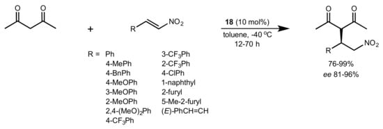 The Michael addition of acetylacetone to nitroolefins catalysed by 18.
