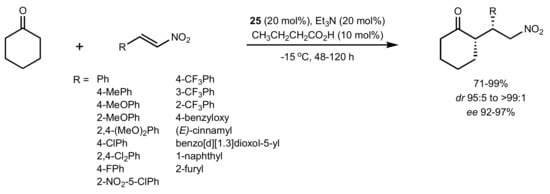 The Michael addition of cyclohexanone to nitroolefins catalysed by 25.