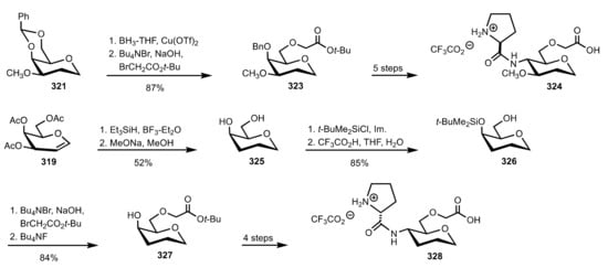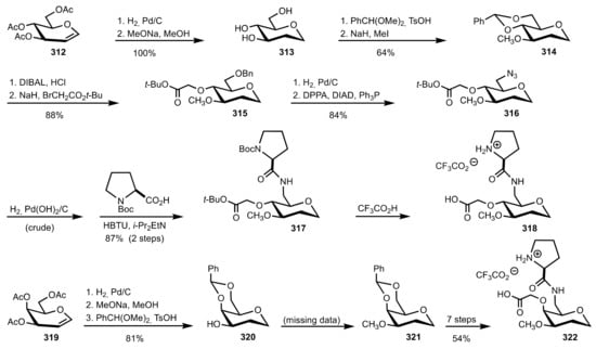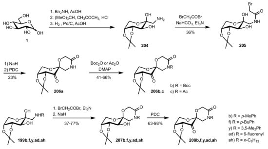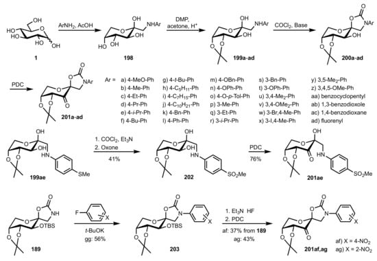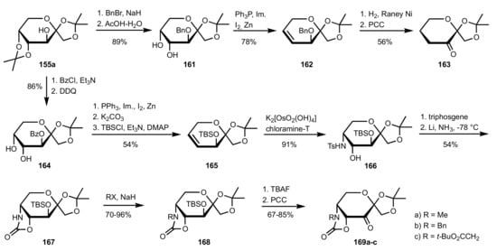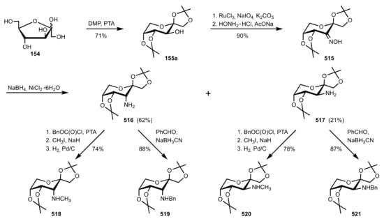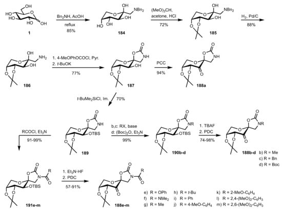 - Murphy, P.V.; O’Brien, J.L.; Gorey-Feret, L.J.; Smith, A.B., III. Synthesis of novel HIV-1 protease inhibitors based on carbohydrate scaffolds. Tetrahedron 2003, 59, 2259–2271. [Google Scholar] [CrossRef]