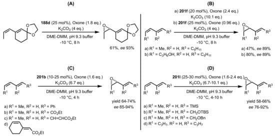 - Bakó, T.; Bakó, P.; Bombicz, P.; Kubinyi, M.; Pál, K.; Bodor, S.; Makó, A.; Tőke, L. Phase-transfer catalyzed asymmetric epoxidation of chalcones using chiral crown ethers derived from d-glucose, d-galactose, and d-mannitol. Tetrahedron Asymmetry 2004, 15, 1589–1595. [Google Scholar] [CrossRef]