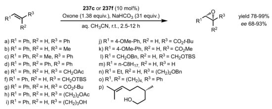 A thorough literature survey revealed that more than two hundred articles dealing with synthetic applications of carbohydrate-based organocatalysts have been published over the last two decades; however, this body of work has been only partially highlighted in reviews. In particular, four reviews [5,6,7,8] were devoted to a single class of sugar-derived organocatalysts, i.e., the carbohydrate-containing crown ethers, while five survey articles on the asymmetric epoxidation of olefins described more [9,10] or less [11,12,13] extensively the properties of another family of carbohydrates, the sugar ketones.