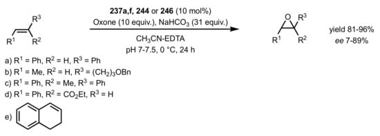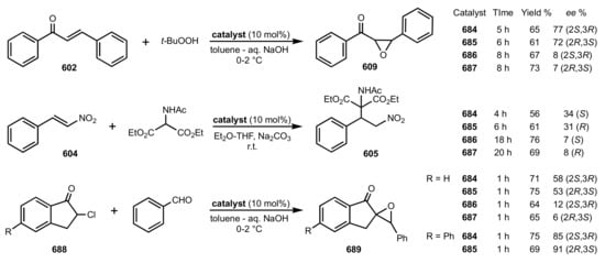 - Rapi, Z.; Bakó, P.; Keglevich, G.; Szöllősy, A.; Drahos, L.; Botyánszki, L.; Holczbauer, T. Asymmetric phase transfer Darzens reactions catalyzed by d-glucose- and d-mannose-based chiral crown ethers. Tetrahedron Asymmetry 2012, 23, 489–496. [Google Scholar] [CrossRef]