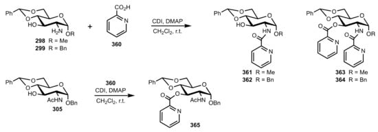 - Kaji, E.; Hosokawa, Y.; Watanabe, Y.; Kobayashi, M.; Yamakawa, M. Stereospecific access to β-mannosides from glucose-derived 1,2-orthoesters as glycosyl donors. Heterocycles 2003, 61, 459–470. [Google Scholar] [CrossRef]