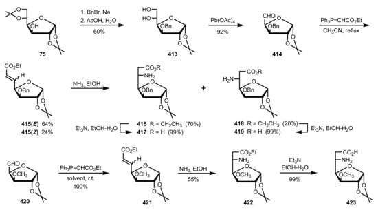 - Dondoni, A.; Scherrmann, M.-C. Thiazole-Based Synthesis of Formyl C-Glycosides. J. Org. Chem. 1994, 59, 6404–6412. [Google Scholar] [CrossRef]