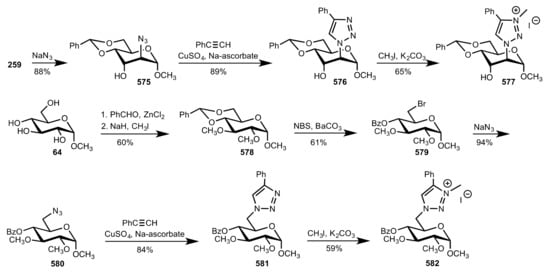 - Nemcsok, T.; Rapi, Z.; Bagi, P.; Bakó, P. Synthesis and application of novel carbohydrate-based ammonium and triazolium salts. Synth. Commun. 2019, 49, 2388–2400. [Google Scholar] [CrossRef] [Green Version]