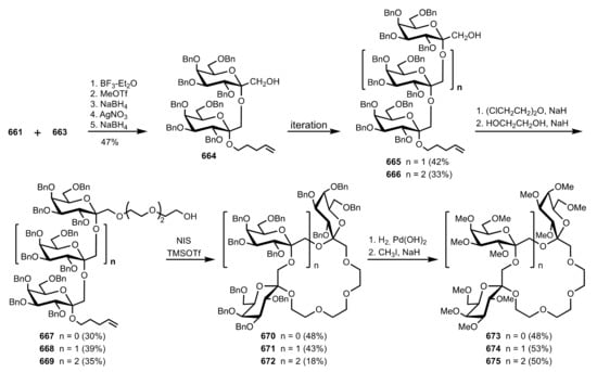- Dondoni, A.; Marra, A.; Scherrmann, M.-C.; Bertolasi, V. Chemical Synthesis of Linear and Cyclic Unnatural Oligosaccharides by Iterative Glycosidation of Ketoses. Chem. Eur. J. 2001, 7, 1371–1382. [Google Scholar] [CrossRef]