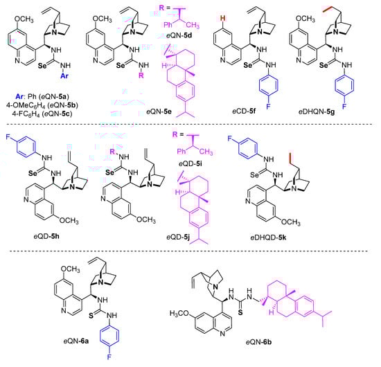 - Zielińska-Błajet, M.; Najdek, J. Novel selenoureas based on Cinchona alkaloid skeleton: Synthesis and catalytic investigations. Materials 2021, 14, 600. [Google Scholar] [CrossRef]