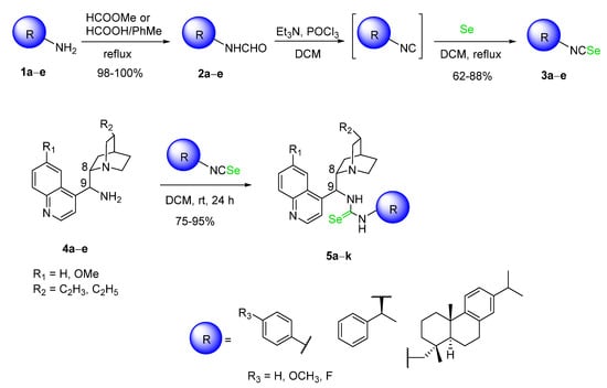 3.3. General Procedure for the Synthesis of Selenourea Catalysts 5a–k