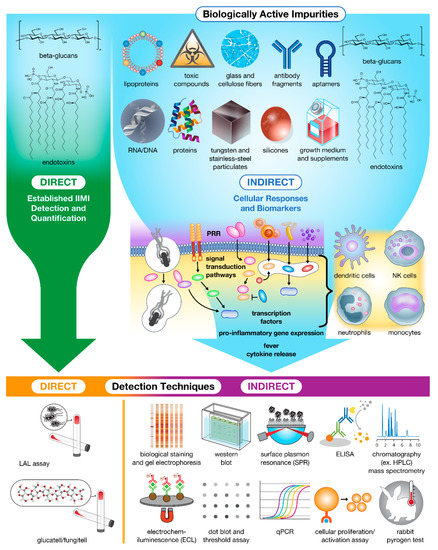 Impurities in drug products trigger innate cellular responses and produce biomarkers for bioassay detection and Quantification. Currently, only β-glucans and endotoxins can be detected and quantified directly using specialized assays. The remaining population of impurities must instead be detected and quantified indirectly using downstream biomarkers (e.g., proteins, peptides, and nucleic acids) and immune cell activation as hallmarks of contamination.