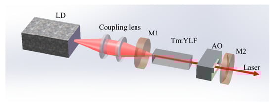 Experimental setup of diode-end-pumped AO Q-switched Tm:YLF laser.