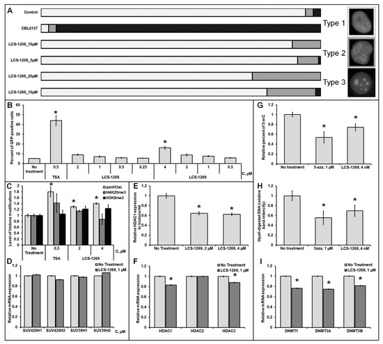 3.7.2. Analysis of the LCS-1208 and LCS-1269 Ability to Reactivate the Expression of the Epigenetically Repressed GFP Gene in HeLa TI Cell-Based Assay