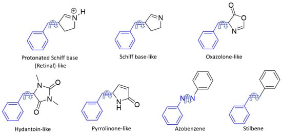 A photoswitch is a molecule that can be interconverted reversibly between two different states by the action of light. Different families of molecular photoswitches have been reported, depending on the photochemical reaction inducing the interconversion, with E/Z isomerization and electrocyclization being the most common. In particular, a wide variety of E/Z molecular switches have been reported such as azobenzene [,], stilbene [,], spiropyrans [,], indigoids [,], and retinal-like [,,,,] or other switches based on natural photoactive chromophores [,], such as the chromophore of the green fluorescent protein (GFP) [,]. The synthesis of such a considerable amount of E/Z molecular switches is explained by their widespread use, including in smart materials, such as memory devices, data storage, photocages, photoactive assembled monolayers, polymers, liquid crystals, etc. [,,,]. The catalog of amazing applications of molecular photoswitches includes, among others, optical switches [], 3D optical storage [], and surface relief grafting []. In this sense, azobenzenes have been extensively used, even in the context of nonlinear optical properties []. Furthermore, biological systems composed of photochromic bio-active small molecules, and larger photoactive peptides/proteins or nucleic acids have also been reported [,,,,]. Ideally, the required photon energy responsible for the E → Z photoisomerization should be different from the one responsible of the backward process, i.e., Z → E photoisomerization, in order to fully control the switching state and process (Figure 1).