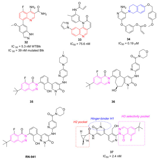 - Liu, J.; Chen, C.; Wang, D.; Zhang, J.; Zhang, T. Emerging small-molecule inhibitors of the Bruton’s tyrosine kinase (BTK): Current development. Eur. J. Med. Chem. 2021, 217, 113329. [Google Scholar] [CrossRef]