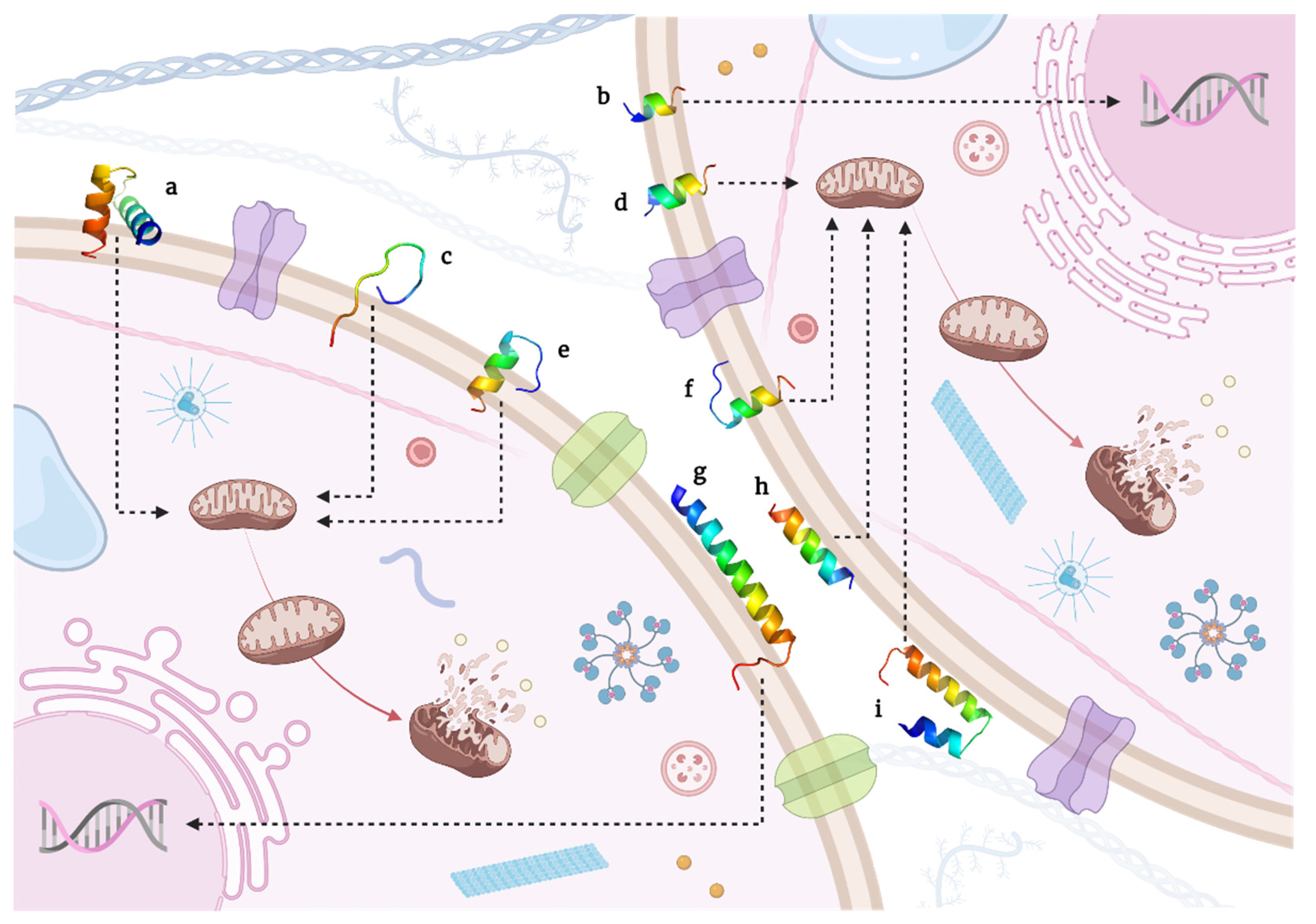 5.1. Peptides Performing Membrane-Damaging Cell Death