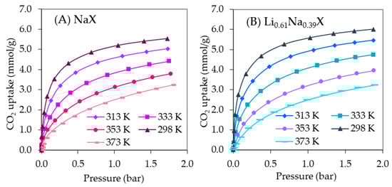 Figure 10 presents the CO2 adsorption isotherms of NaX and Li0.61Na0.39X zeolites measured at different temperatures.