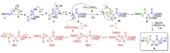 Postulated mechanism for the one-pot synthesis of HMPPs 6 and formation of phosphono-phosphonate isomers 9i–l.